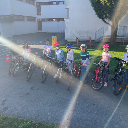 Unsere 3. Klassen durften heute zwei spannende Stunden mit der Radfahrschule verbringen. Auf dem Übungsparcours trainierten die Kinder sicheres Anfahren, Handzeichen geben und Bremsen – und hatten dabei jede Menge Spaß.